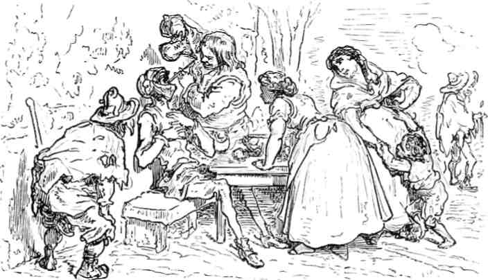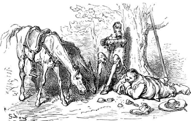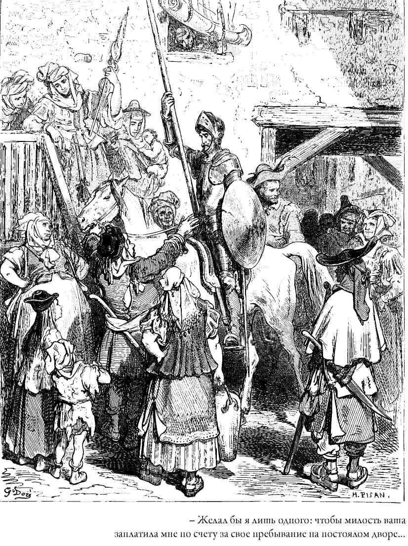 Пансе на постоялом дворе, принятом рыцарем, к несчастью его, за замок