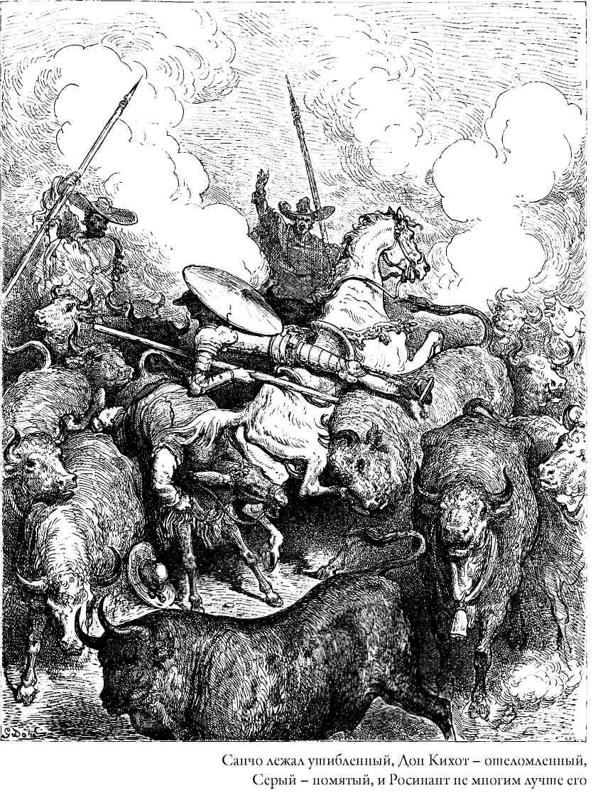 Таков был конец остроумно-изобретательного идальго ламанчского, родину