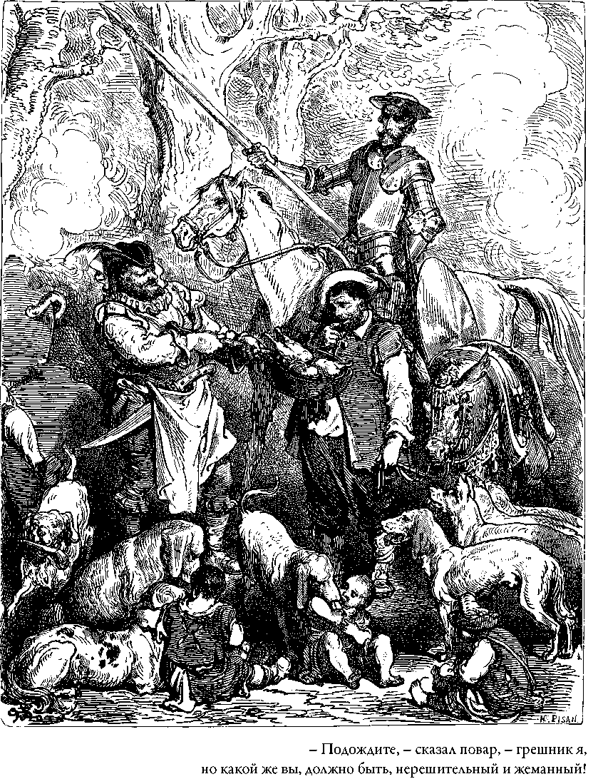 но тем не менее племянница спокойно ела, ключница попивала, а Санчо Панса