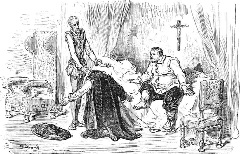 Пансой с ключницей и племянницей Дон Кихота, и о других забавных