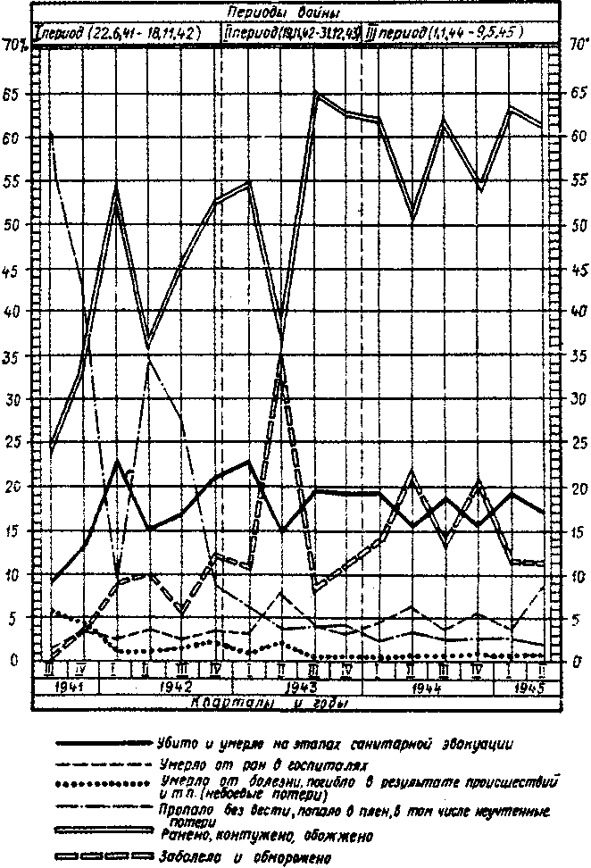 Настоящий труд, созданный авторским коллективом Генерального штаба, является одним из самых первых аналитических работ по военным потерям XX века России и Советского Союза. В нем сделана попытка дать наиболее полный анализ потерь России и Советского Союза в войнах и военных конфликтах за период с 1900 по 2000 гг. Их обобщенные итоги представлены в заключительной таблице 229, из которой видно, что безвозвратные демографические потери армии и флота (убитые, умершие от ран и болезней, умершие в плену, погибшие в результате несчастных случаев и других причин небоевого характера) составили за XX столетие 12132668 чел. Наибольшее их число приходится на три самые тяжелые войны: первую мировую (1914-1918 гг.), гражданскую (1918-1922 гг.) и Великую Отечественную (1941--1945 гг). В первой из названных войн потери составили 2254,4 тыс. чел. (из 15378 тыс. призванных по мобилизации и поставленных под ружье), во второй -- 980,7 тыс. чел. (из 6707,6 тыс. чел. общей численности Красной Армии), в третьей -- 8668,4 тыс. чел. (из 34476,7 тыс. чел. надевавших шинели за весь период войны). Указанные войны сопровождались также огромными потерями среди гражданского населения.