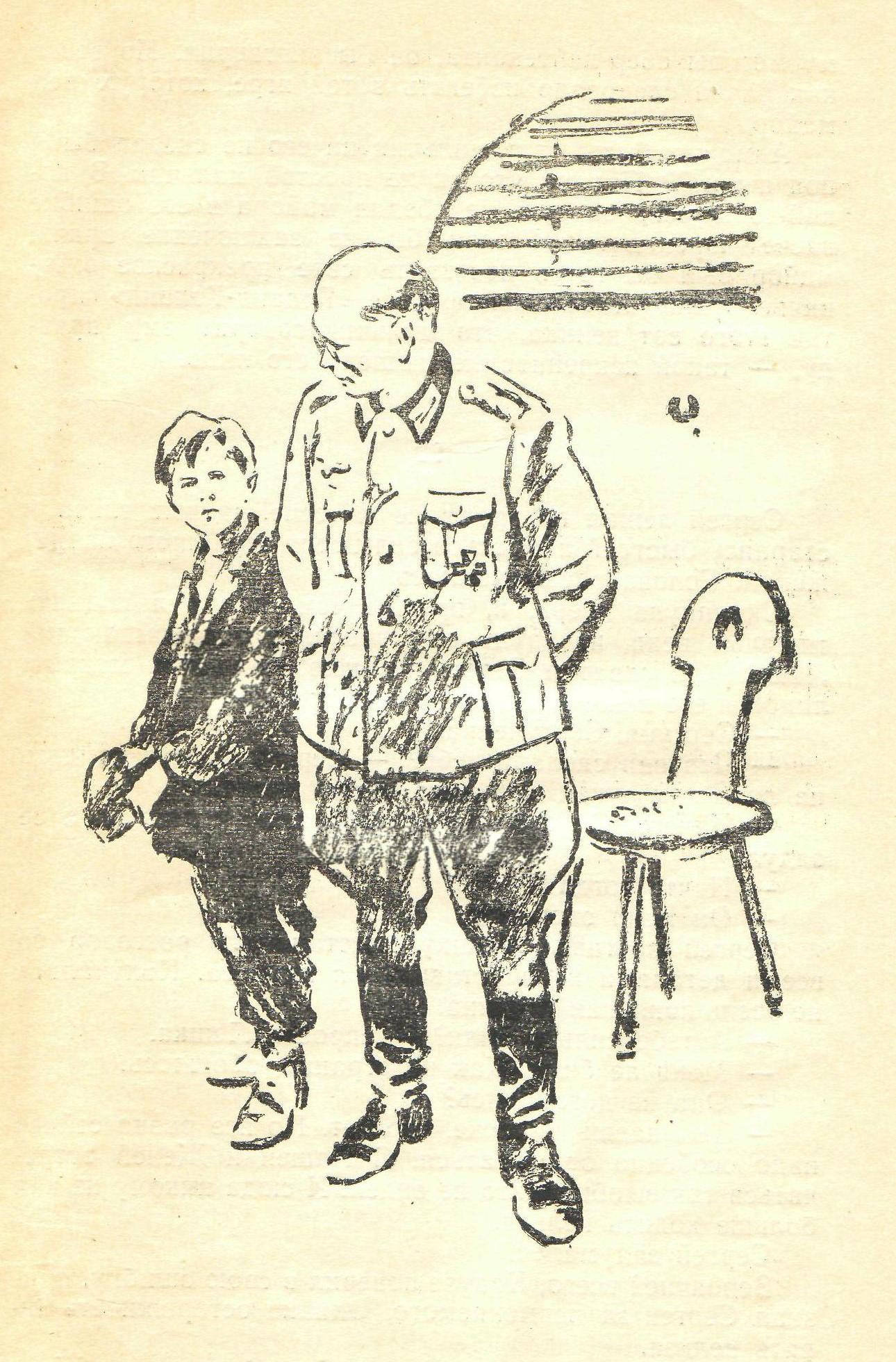выстрела немец выронил автомат, схватился за руку и упал с крыльца. Лешка