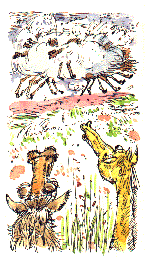 Подхваченный движением массы, вместе с табуном уносится и Малыш.