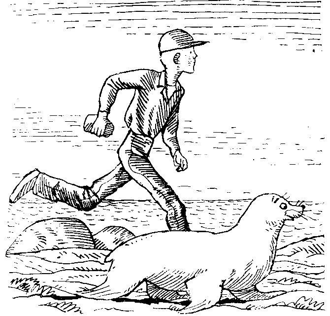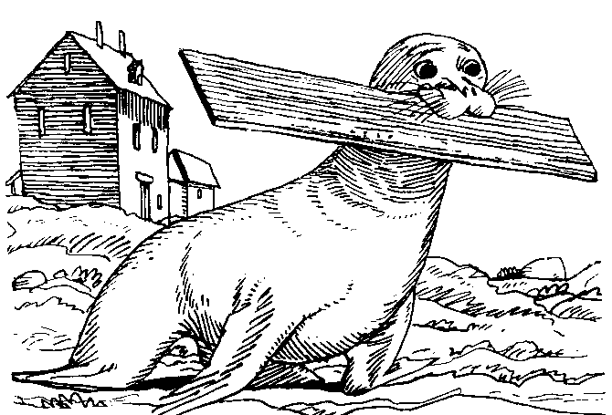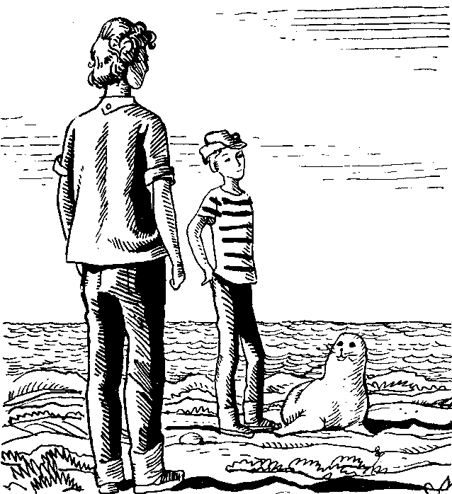 котором совершенно прямо, как стоят обычно пингвины, сидел тюлень.