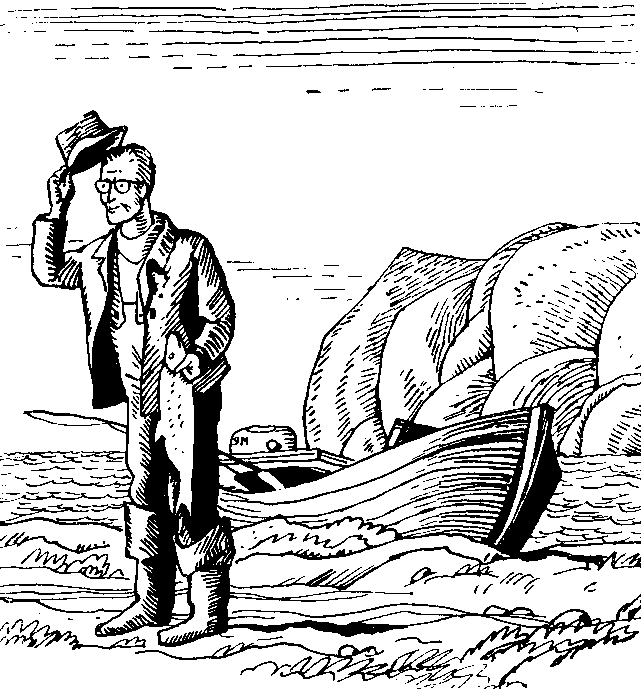 и оттолкнулся от берега веслом. Джерри даже залез в воду - хотел