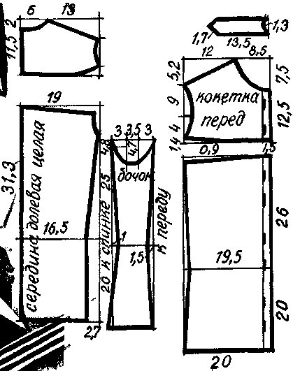 (выкройка шорт, купальника)