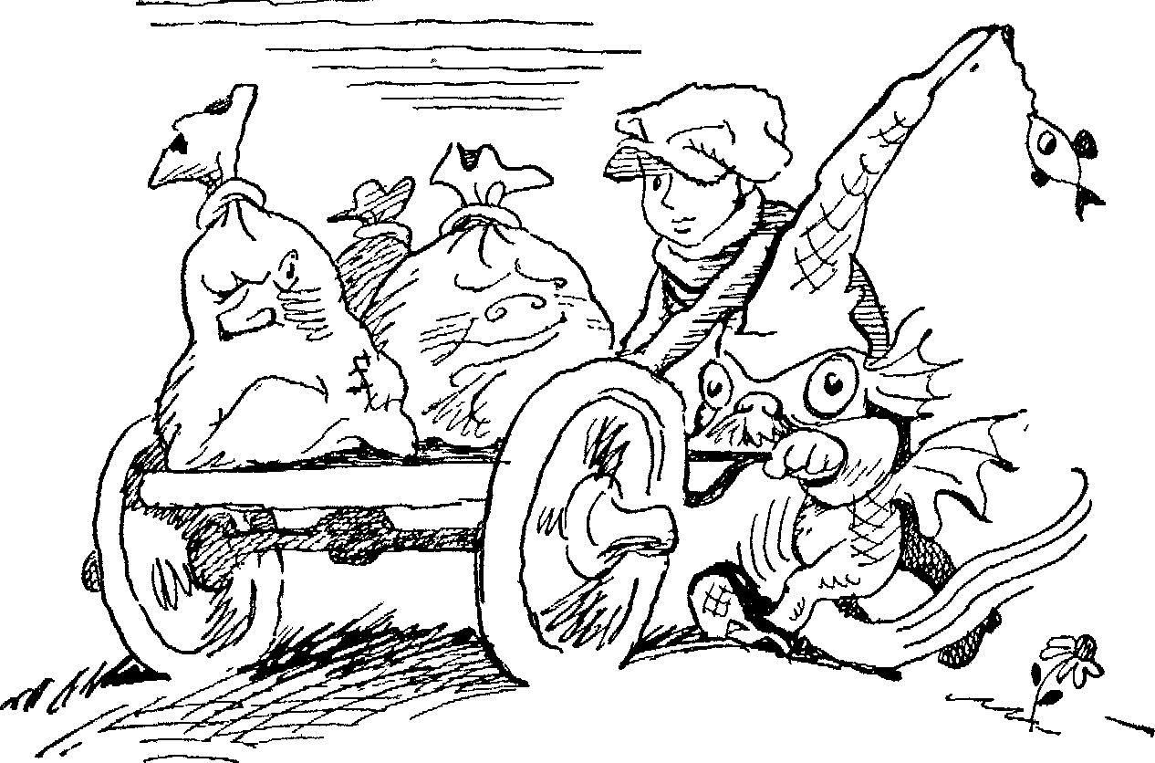 были круглыми, как у карася. Одежда у него была из оранжево-зеленоватой в