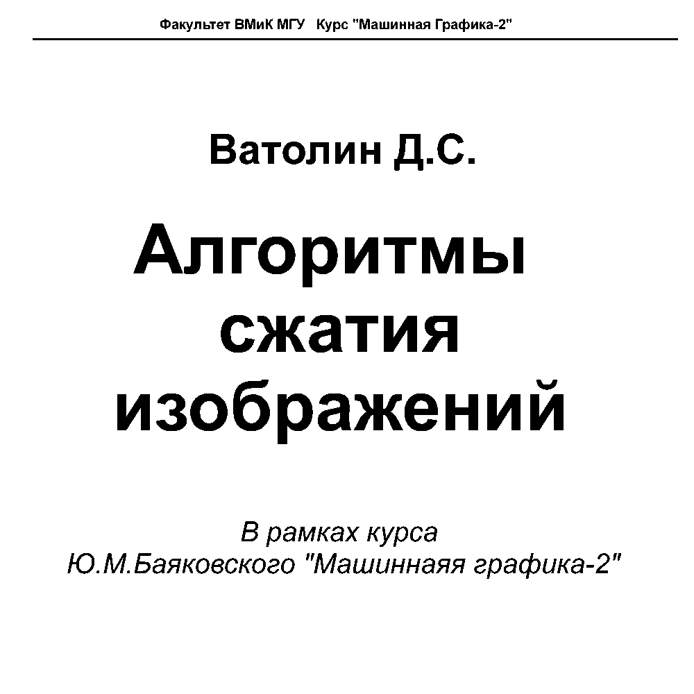 Ватолин Д.С. Алгоритмы сжатия изображений. Методическое пособие.
