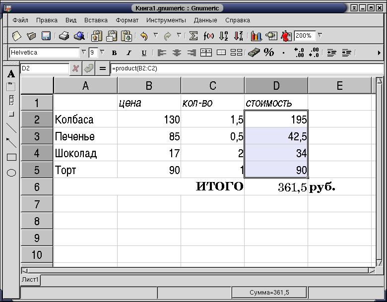 Лекция 5. OpenCalc -- свободный редактор электронных таблиц