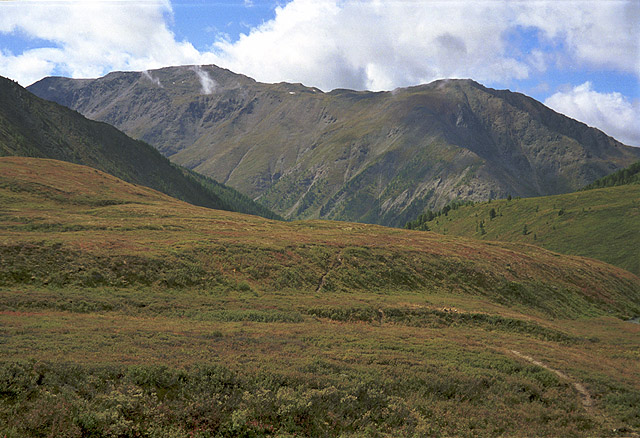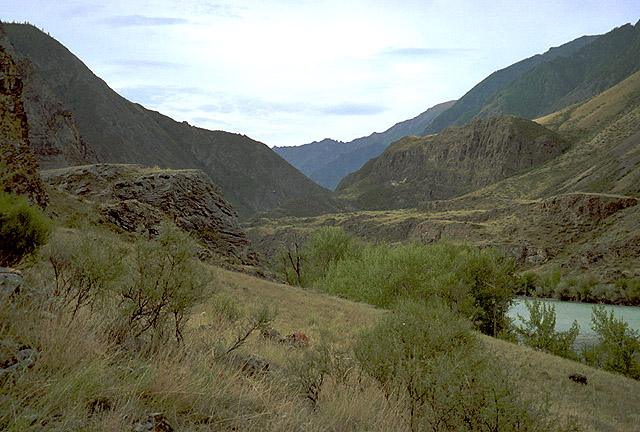 Начало спуска с плато Ештык-Коль в долину р. Шабага. Впереди долина р. Шавла.