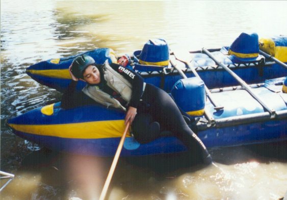 Примерно в это время подъехал трактор, груженый 6-местными рафтами и автобус, груженый будущими пассажирами этих рафтов и их инструкторами. Из пассажиров заполнилась некая девица, которая так ощутимо тряслась от холода, что ей выделили гидро-рубаху с инструкторского плеча. Мы, отягощенные опытом трех дней сплава, смотрели на этих несчастных свысока. Да еще и наши стройные птицы-каты не идут в сравнение с их калошами. Вобщем, что там говорить? Жалко времени, как говорят аборигены.