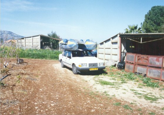 Загружаемся. Кормановскую двойку - на его же машину. Остальные каты - на тендер, одолженный Мишей у проживающего в мошаве владельца (?) велосипедно-прокатной конторы. Грузим так: сначала - четверка килем вниз, под углом 40o к горизонту. На нее, килем кверху - двойку (невероятно, но факт: после получаса езды в таком положении двойка, которая была сверху, сдулась практически до минимальных своих размеров). Получилась эдакая абстрактная композиция под кодовым названием "наш ответ катюшам".