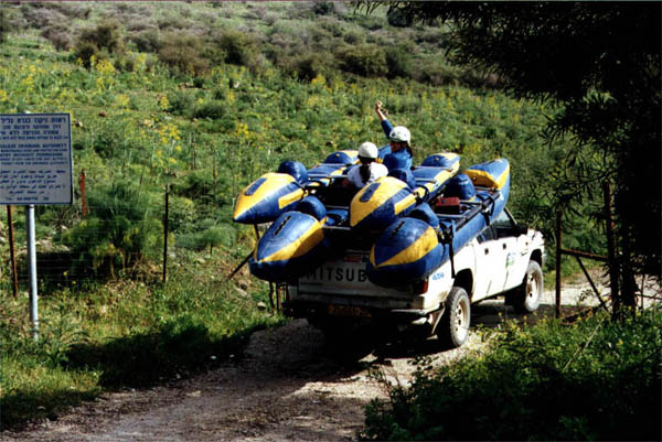 Доехали, а остальные уже позавтракали и даже почти собрались. Оставили нам на донышке немного рисовой каши и одну ложку на двоих (Уу, буржуи) 1. Взвалили мы вчерашнюю четверку и кормановскую двойку на джип аборигенов (их зовут Боаз и Надав. Боаз - который работал инструктором на катамаранах, Надав - владелец джипа, весьма пригодившегося при перевозке катов). Подъехали к "Kfar Hanassi" - до того дня - конечная точка маршрута, а сегодня - начальная. Как раз когда подъехали кончился дождь, чему лично я по неизвестным причинам был рад (хотя казалось бы, какая разница, мокнуть только снизу и с боков или еще и сверху?)