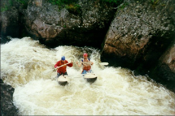 иногда приходилось выскакивать из байдарок, дабы не подрать