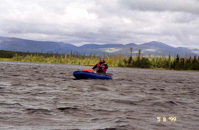 Если ветер не слишком силен, надо грести не торопясь, в охотку, облизывая левый берег, а на третьем острове сделать дневку, дожидаясь безветрия.