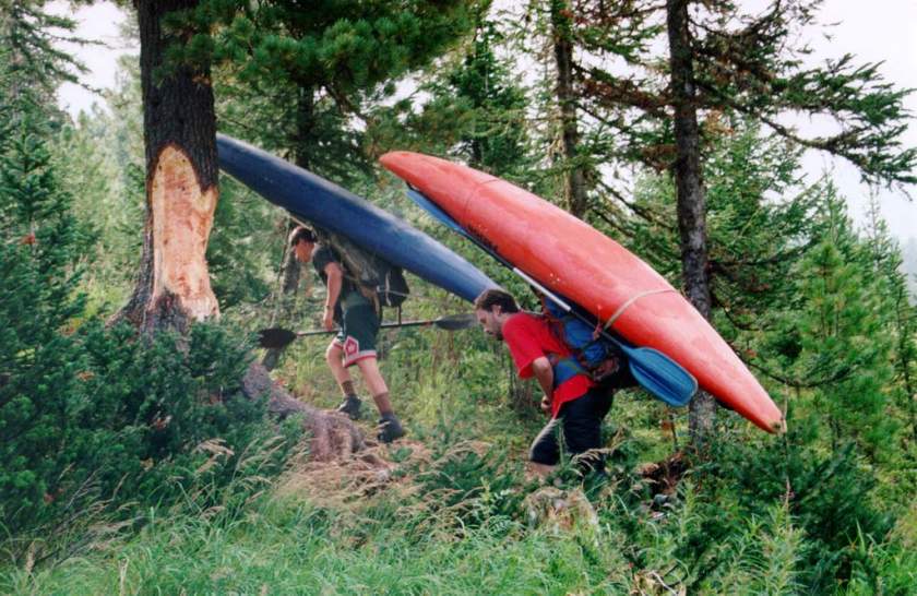 связкой в гору легче, чем волочить каяк на веревочке, тем более