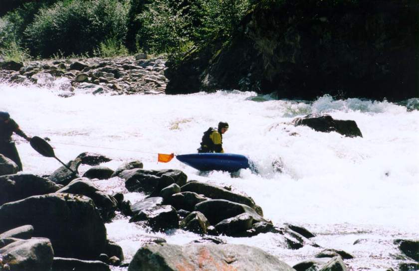 страховку. Каякер, прошедший порог, менял одного из страхующих,